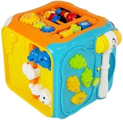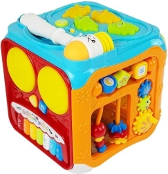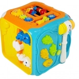 Interaktivna izobraževalna kocka omogoča raznoliko in privlačno zabavo za vašega otroka. Vsaka stran kocke ima drugo funkcijo, kar otrokom omogoča premikanje elementov, ujemanje oblik ter igro z glasbo in lučkami. Zvočni in svetlobni učinki spodbujajo senzorično zaznavanje in olajšajo učenje.