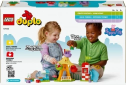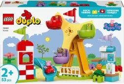 Komplet LEGO DUPLO Pujsa Pepa – zabaviščni park otroke popelje v svet priljubljene risanke. Set je idealen za prve graditeljske korake: otroci lahko posadijo like v gondole in zavrtijo veliko kolo, se spuščajo po toboganu ali se igrajo pri stojnici z džusi. Na igriv način vadijo koordinacijo oko–roka in odkrivajo čustva, povezana z novimi doživetji.