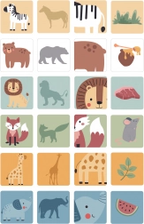 Set je izdelan iz trpežnega lesa in prebarvan z netoksičnimi barvami, zato je varen za otroke od 3 let. Ponuja tri igralne različice: klasično izvlečenje kock, igro z živalsko kocko in pametno ujemanje s kartami (žival–senca–detajl–hrana). Tako igra podpira koncentracijo, sodelovanje in spoznavanje sveta živali.