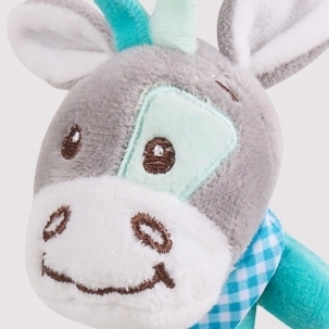 Plišasta osličkova igrača Woopie za dojenčke s piščalko in šumečimi elementi. Varna, mehka in enostavna za čiščenje.