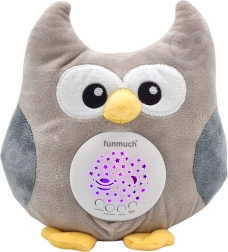 Plišasta sova združuje nočno lučko, projektor in zvočni modul v enem. Mehko telo iz prijetnega materiala je napolnjeno z vato, zato je idealno za crkljanje. Na trebuščku projicira nežne zvezdice in luno s spreminjajočimi se barvami, hkrati pa predvaja uspavanke ali beli šum, vključno z utripom srca za naravno pomiritev.