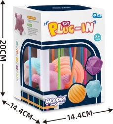 Barvni prožni trakovi omogočajo otrokom, da like zlahka potiskajo noter in ven ter tako urijo prijem, koordinacijo in potrpežljivost.