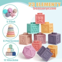 - 23 delov za raznoliko senzorično igro in gradnjo