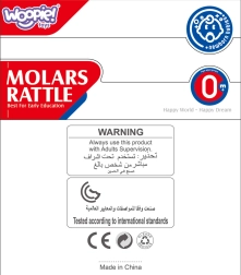 Igračo lahko shranite v hladilnik, da nudi olajšanje razdraženim dlesnim med izraščanjem zob. Namenjena je otrokom od rojstva in združuje funkciji grizala in ropotuljice. Raznolike teksture, barve in oblike prebudijo otrokove čute.