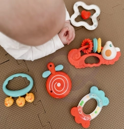 Vsaka ropotuljica in grizalo imata edinstveno zasnovo, ki otroku prinaša raznolikost in zabavo.