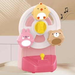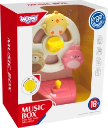 Piščanček, zajček in medvedek se ob zagonu zavrtijo in otroka spremljajo s prijetno melodijo pozitivke. Zabava, ki spodbuja vid in sluh.