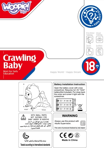 Rjoveče Dojenček znamke WOOPIE je vesela igrača, idealna za otroke od 18 mesecev. Ta igrača spodbuja otroke, da posnemajo njene gibe, s čimer razvijajo svoje motorične sposobnosti. Za več zabave je opremljena z melodijo, ki stimulira sluh, in svetlobnimi efekti, ki podpirajo vidni čut. Izdelek je varen, ne vsebuje ostrih robov in je izdelan iz vzdržljivega materiala. Odlično služi kot prijatelj za vašega otroka.