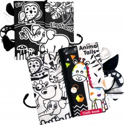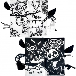 Črno-beli motivi z živalicami so idealni za novorojenčke in pomagajo razvijati ostrino vida ter osredotočenost.