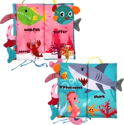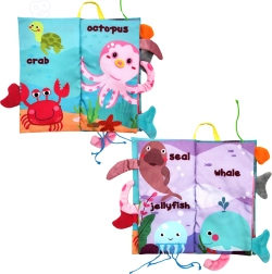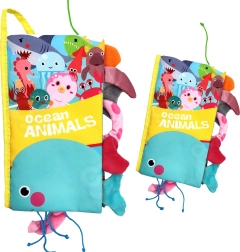Ta mehka in trpežna knjižica »Ocean Animals« navduši otroke od rojstva dalje. Barviti morski motivi, izstopajoče plavuti in repki ter šušteče podrobnosti nudijo bogato sensorično stimulacijo. Otrok si ob prijemanju in raziskovanju repkov naravno krepi fino motoriko in koordinacijske sposobnosti.
