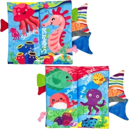 Blaga knjižica WOOPIE z morsko tematiko je idealna prva igrača za dojenčke od rojstva dalje. Vsaka stran ponuja barvite ilustracije in različne teksture, ki vabijo k dotiku. Izbočeni repki ribic in drugih morskih bitij spodbujajo otroke k prijemanju in vlečenju, s čimer naravno krepijo fino motoriko in koordinacijo.