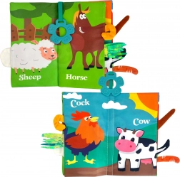Odkrijte svet živali na igriv način. Vsaka stran knjižice skriva drugačno strukturo in šumeči učinek, medtem ko navzven štrlijo mehki repki, ki vabijo k prijemanju. Otrok tako naravno vadi fino motoriko, koordinacijo oko–roka ter razvija tip, sluh in vid.