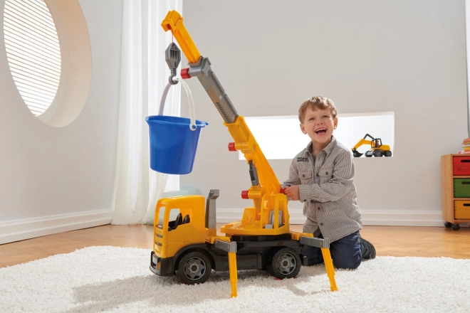 Robustno otroško avtodvigalo znamke LENA bo razveselilo male graditelje z realističnimi funkcijami in vzdržljivo izvedbo. Je popolnoma mehansko funkcionalno, ima 270° vrtljivo roko, izvlečne stabilizacijske noge in vitlo s kavljem za dvigovanje tovora. Ob polnem izvleku doseže dvigalo impresivno dolžino do 115 cm, kakovostna plastika pa zlahka prenese obilico otroške domišljije.