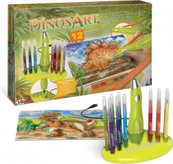 DinosArt airbrush pobarvanka set je idealen za vsakega malega umetnika, ki obožuje dinozavre in ustvarjalno zabavo. V kompletu so električno pršilno pero, polnilna postaja z USB kablom ter vrsta posebnih flomastrov in akvarelnih barv.