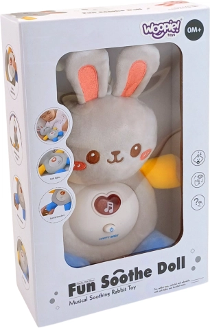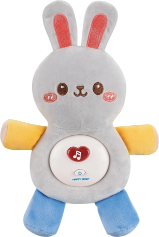 Interaktivni plišasti zajček je zasnovan za najmlajše otroke od rojstva dalje. Nežna površina, varni izvezeni detajli in pomirjujoče melodije pomagajo dojenčku hitreje zaspati in se počutiti varno. Svetlobni element na trebuščku ustvarja prijetno vzdušje med večerno rutino.