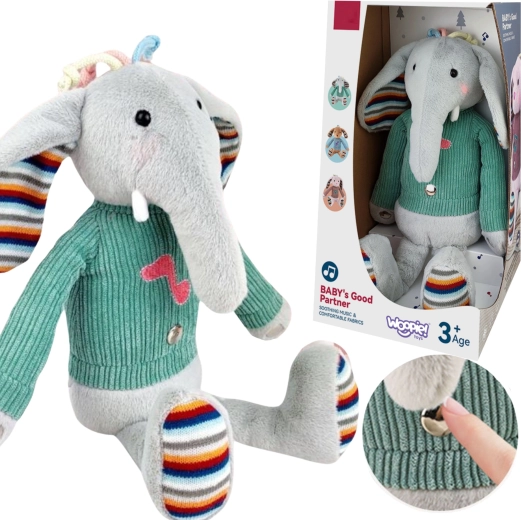 Interaktivni plišasti slon znamke Woopie pomiri in uspava vašega otroka. Ni le prisrčen, mehak in prijeten za crkljanje, temveč tudi odličen družabnik za igro in zabavo.