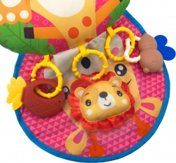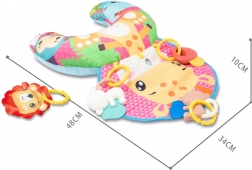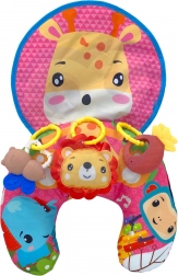 Interaktivna blazina WOOPIE BABY z ljubkim potiskom žirafe raste skupaj z vašim otrokom. Nudi mehko in stabilno oporo pri igri na trebuščku, pomaga trenirati zgornji del telesa in koordinacijo, kasneje pa podpira prve poskuse sedenja. Zahvaljujoč odstranljivim igračam bo dojenček užival v senzoričnem raziskovanju doma in na poti.