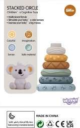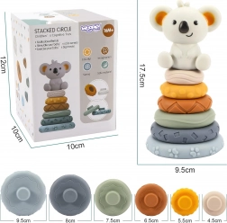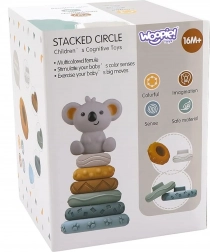 Otroci lahko zlagajo po domišljiji ali po velikosti obročev, s čimer razvijajo prepoznavanje oblik in velikosti, koncentracijo in potrpežljivost. Nežne pastelne barve in mehka figurica koale naredijo igračo privlačnega spremljevalca za vsak dan.