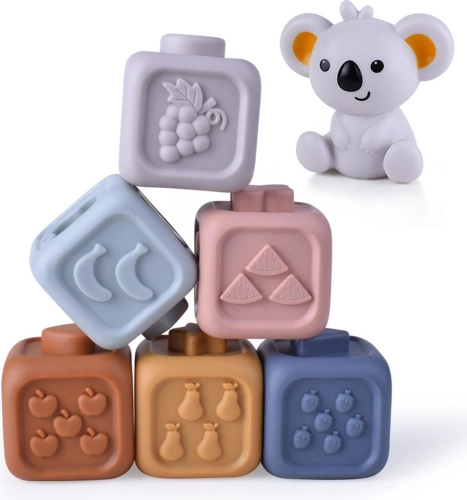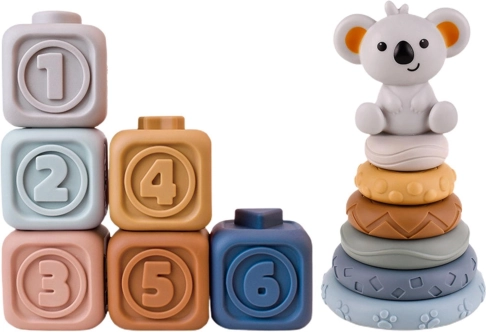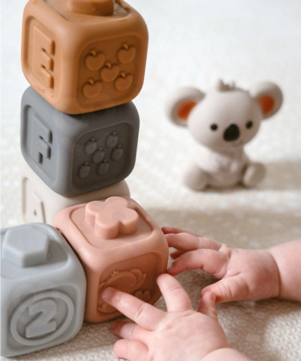 Senzorične silikonske kocke s številkami in koalo 2v1 – grizalo in izobraževalni komplet WOOPIE
