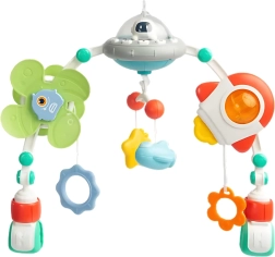 Vrteči, ropotajoči in viseči elementi se odzivajo na dotik, spodbujajo prijemanje in lahko služijo tudi kot varna grizala za prve zobke.