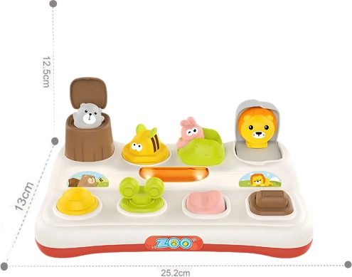 Odkrijte zabavo in učenje v enem z interaktivno igračo WOOPIE – poskakujoče živali ZOO. Po aktivaciji s stikalom, vrtljivim gumbom ali tipkami se žival dvigne in preseneti otroka. Igrača je vzdržljiva, kakovostno izdelana in odlično podpira fino motoriko ter razumevanje vzročno-posledičnih povezav.