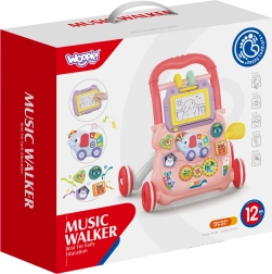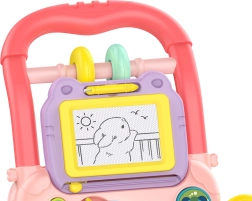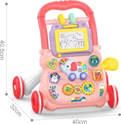 Hojc je opremljen z risalno tablo, ki prebuja kreativnost otroka in mu omogoča ustvarjanje lastnih risb in vzorcev. Na igrački se nahaja tudi interaktivni slon, ki ob pritisku gumbov predvaja vesele melodije. Vsebuje tudi set blokov različnih oblik, na katerih so natisnjene slike živali. Ti elementi prinašajo v igro učenje oblik, barv in živali. Premični zobniki, ki se začnejo vrteti, ko jih zavrtimo, dodajajo otroku zabaven element presenečenja. Varnost med igro zagotavlja sistem blokiranja koles, ki ohranja hojc stabilen tudi med prvimi negotovimi koraki otroka. Zrcalo nameščeno na hojcu omogoča otroku spoznavanje lastnega odseva, kar je pomemben element razvoja samozavesti.