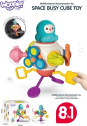 - 8 v 1 (vrteči se astronavt, navijalni mehanizem/»grizalo«, vrtavka, povratno navijanje, volan z zvoki, ključ v odprtino, drsna ladja, gumb z zvokom)