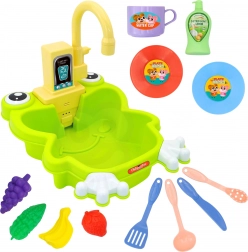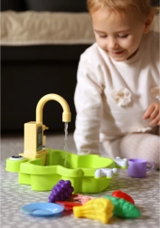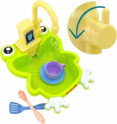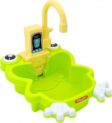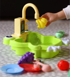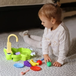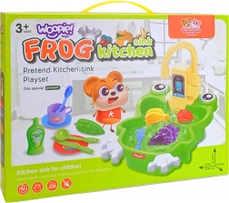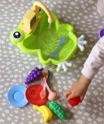 Korito Žabka je odlična interaktivna igrača, ki vsakodnevna kuhinjska opravila spremeni v zabavno igro. Prava pipa z kroženjem vode po nalitju vode v korito in vstavitvi baterij posnema resnično pomivanje posode in sadja. Zaradi prisrčnega žabjega dizajna igra takoj pritegne otroke in jih motivira k raziskovanju.