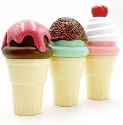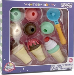 Vsebuje 15 delov, vključno s korneti, kepicami in žlico za sladoled.