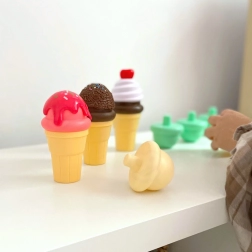 Igrača Set Sladoledarja razvija otroško domišljijo in kreativnost, saj otrok lahko prevzame vlogo slaščičarja in stranke. Vsebuje vse dele, potrebne za ustvarjanje popolne sladoledne izkušnje. Otrok lahko vzame kornet, zajame kepico sladoleda in jo sestavi po svoji domišljiji.