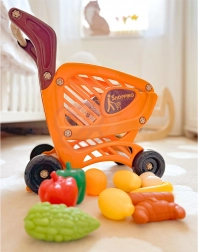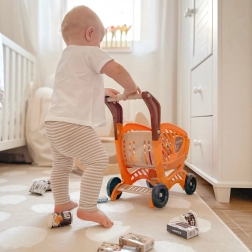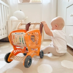 Voziček prinaša zabavo in učenje s posnemanjem resničnih nakupov, kar razvija otrokove veščine v samostojnosti.