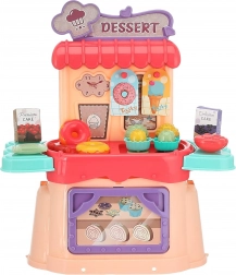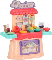 Vključuje sladolede, krofe, sladkarije, skodelice, škatlice in druge dodatke za realistično igro trgovine in slaščičarne.