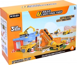 Ta čudovita Garaža za gradbena vozila vsebuje različne gradbene stroje, vključno s prekucnikom, bagrom in mešalcem. Otroci lahko tako razvijajo svojo ustvarjalnost in domišljijo ob ustvarjanju različnih gradbenih projektov. Del kompleta je tudi transportni trak in prometni znaki, ki igri dodajajo realističen pridih.