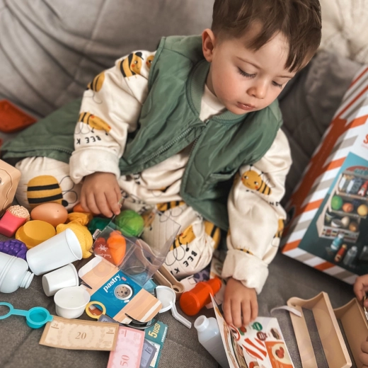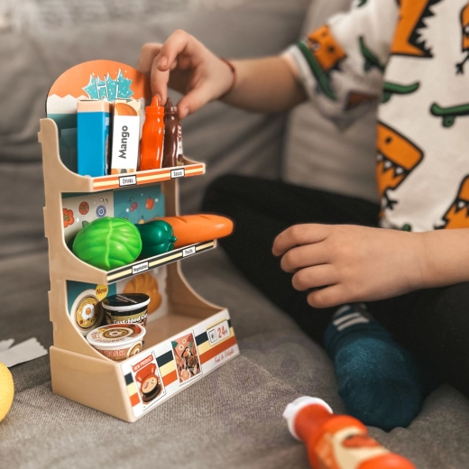 Igra trgovine spodbuja samostojno razmišljanje, komunikacijo in ustvarjalno igro. Zahvaljujoč 42 elementom – od sadja in zelenjave do pijač in konzerv – si lahko otroci ustvarjajo lastne scenarije in vadijo vsakodnevne situacije.