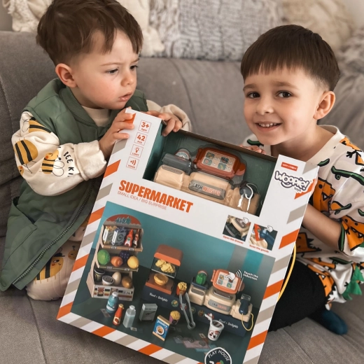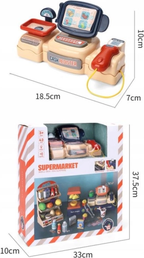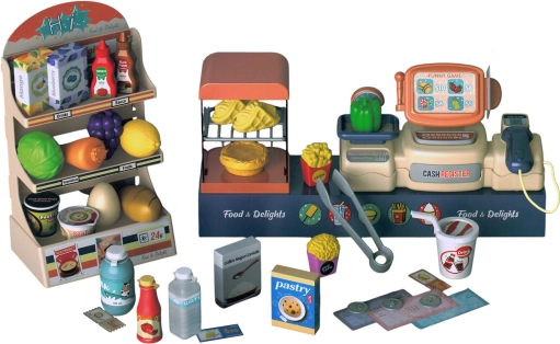 S tem realističnim kompletom supermarketu bodo otroci preizkusili vlogo prodajalca in stranke. Blagajna s skenerjem, funkcionalnim predalom za denar ter papirnatimi bankovci in kovanci uči osnov finančne pismenosti in socialne interakcije. Del kompleta sta tudi tehtnica in bogata ponudba živil.