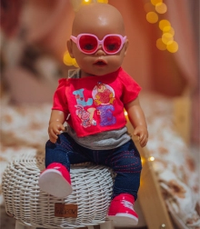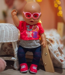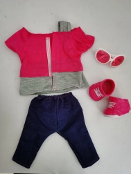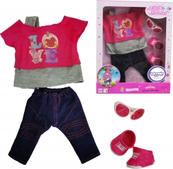 Obleči punčko v ta modni komplet pomeni pripraviti jo za vsako priložnost. Kombinacija modnih barv in sodobnega dizajna prinaša stilski videz.