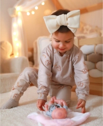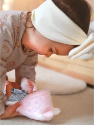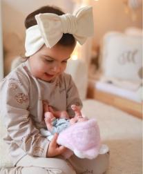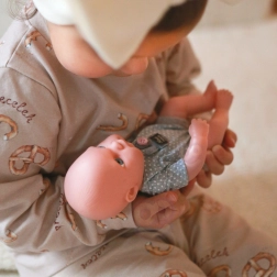 Punčka je opremljena z rožnato odejo, ki se lahko spremeni v šotor, nosilko ali pa preprosto služi kot idealna odeja za hladne dni. Odejo krasijo ušeska, kar punčko naredi še bolj prisrčno in edinstveno.