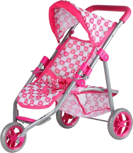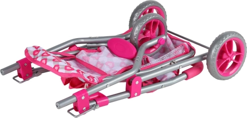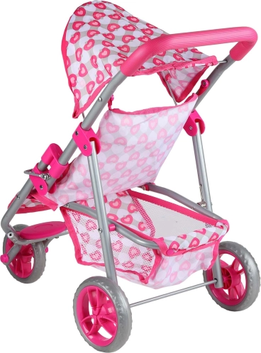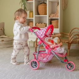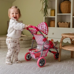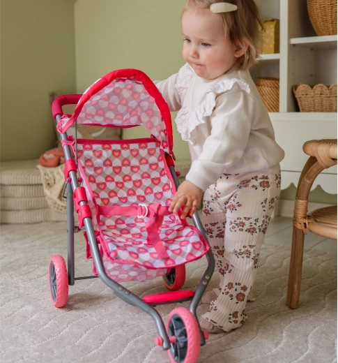Ta rožnat trikolesni voziček za punčke je idealen za otroke od 3. leta, ki imajo radi realistično igro vlog. Lahek, a trden kovinski okvir in udobno upravljanje zagotavljata varno in gladko vožnjo po stanovanju in na prostem. Stilsko oblazinjenje s srčki bo razveselilo vsako malo skrbnico, hkrati pa je enostavno za vzdrževanje – prevleke je mogoče sneti in oprati.
