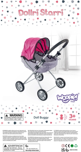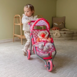 Lahek in stabilen trikolesni voziček za punčke znamke Woopie prepriča z rožnatim dizajnom s srčki in praktično opremo za igro doma in na prostem. Ima zložljivo strehico, varnostne pasove, mehki penasti ročaj in spodnjo košaro za malenkosti. Zahvaljujoč tihim penastim kolesom je enostaven za upravljanje, po igri pa ga hitro zložite za prihranek prostora.