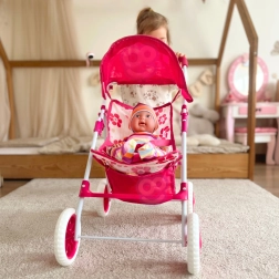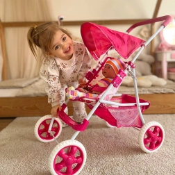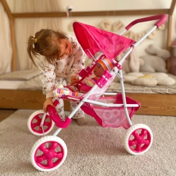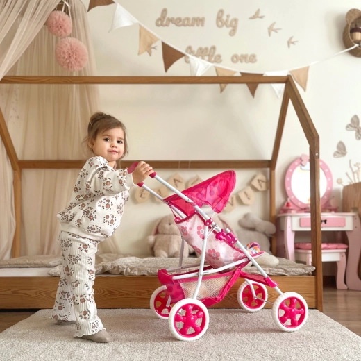 Mehka kolesa ne škripajo in ne opraskajo tal. Praktična košara shrani drobnarije in dodatke za punčko.