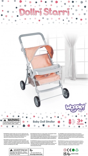 Stajliš voziček za punčke WOOPIE Royal navduši z lahko in stabilno konstrukcijo, zložljivo strehico, mehkim penastim ročajem in tihimi penastimi kolesi. Ponuja varnostne pasove za varno »vožnjo«, oporo za noge in praktično košaro za drobnarije. Enostavno se zloži za prihranek prostora in je idealen za igro doma in na sprehodih.