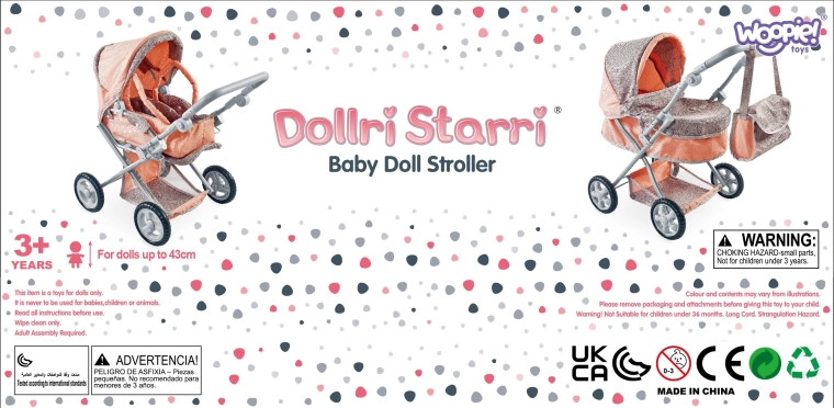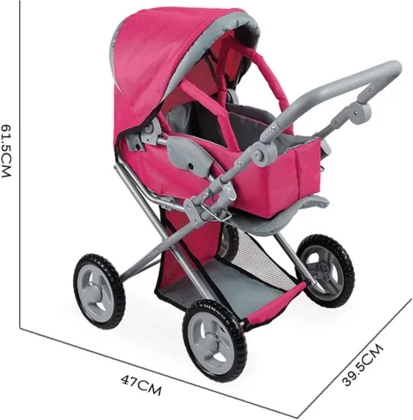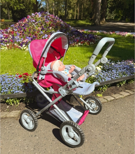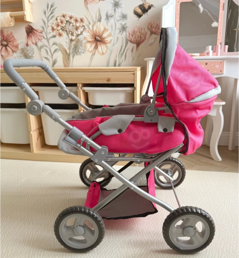 Stilski rožnati voziček za punčke WOOPIE ROYAL bo razveselil vsako malo negovalko. Ponuja 3v1 uporabo – globoki voziček, športni sedež in odstranljivo nosilko/torbo. Ima nastavljiv ročaj za različne višine otrok, tiha kolesa za gladko vožnjo, zložljivo strehico in okvir ter praktično košaro za drobnarije.