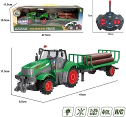 - RC traktor z akumulatorjem, prikolica s 5 hlodi, USB polnilec, daljinski upravljalnik