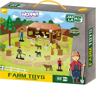 Set Mali kmet Woopie s 65 elementi za ustvarjalno igro s kmetom in živalmi, popoln za otroke od 3 let dalje.