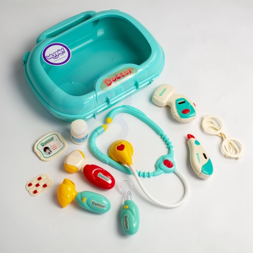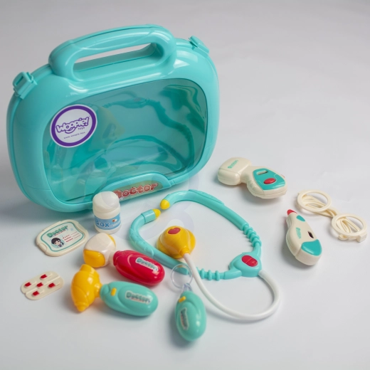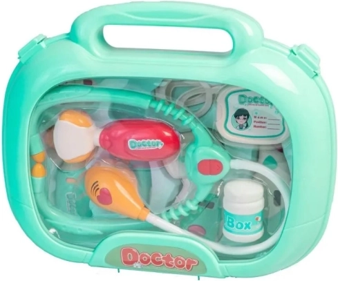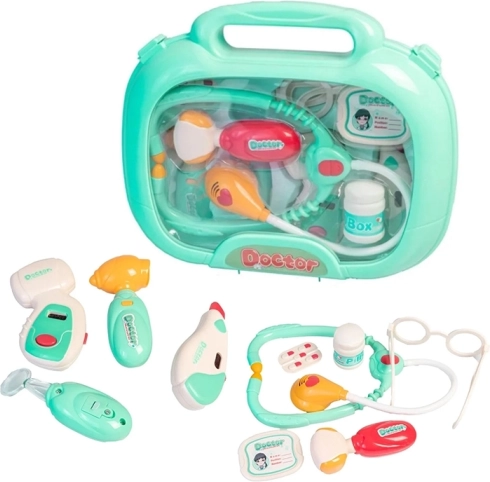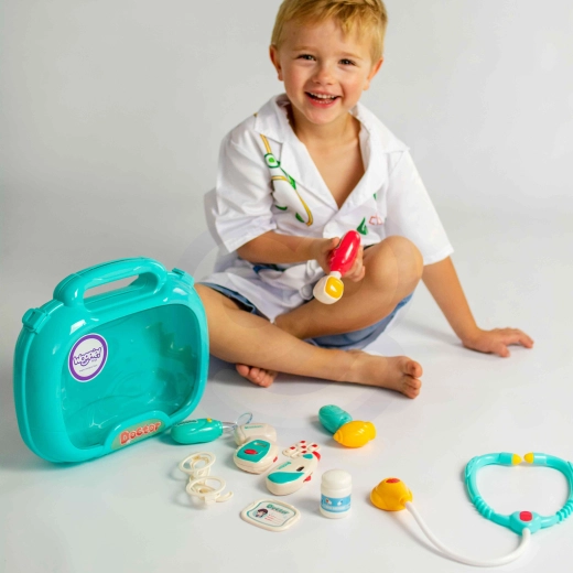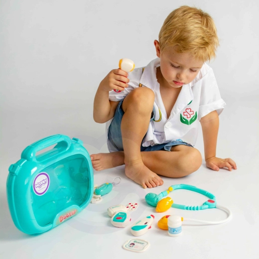 Vse to je shranjeno v udobnem kovčku z ročajem, kar zagotavlja enostavno prenašanje. Otrok lahko razvija svojo domišljijo in se igra zdravnika ali pacienta!