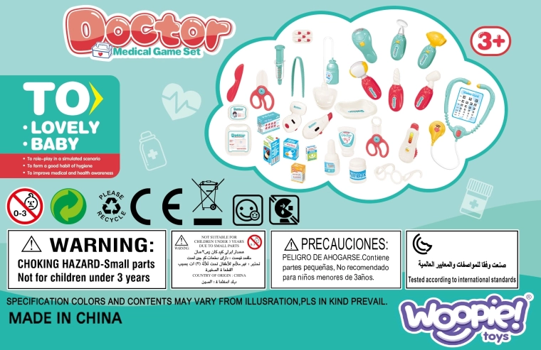 Zabava za bodoče zdravnike! Komplet malega zdravnika Woopie je popolno darilo za vsakega otroka, ki sanja o karieri zdravnika. Set vsebuje različna zdravniška orodja, kot so stetoskop, merilnik krvnega tlaka, termometer in mnogo več. Vsako orodje je opremljeno s posebnimi funkcijami, zaradi katerih se bo otrok počutil kot pravi zdravnik.
