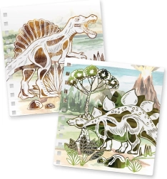 Komplet foličnih pobarvank DinosArt združuje zabavno ustvarjanje in spoznavanje sveta dinozavrov. Z lepilnim foličnim pisalom se žive folije preprosto prenašajo na označena mesta, zato nastajajo izrazite bleščeče slike brez nereda. Otroci urijo fino motoriko, potrpežljivost in ustvarjalnost.