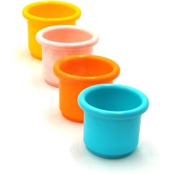 Lončki z različnimi odprtinami ustvarjajo raznolike vodne tokove. Otroci pri prelivanju urijo koordinacijo, prepoznavajo barve in krepijo logično mišljenje.
