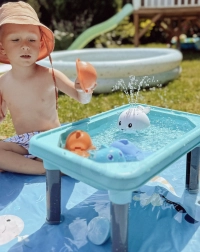 Ta vodna igrača pomaga razvijati pomembne spretnosti: otroci vadijo fino motoriko, koordinacijo oko–roka ter zaznavanje barv in svetlobe. Zaradi varne zasnove je primerna od 12 mesecev in bo priljubljena spremljevalka pri kopanju ali poletni igri v otroškem bazenčku.