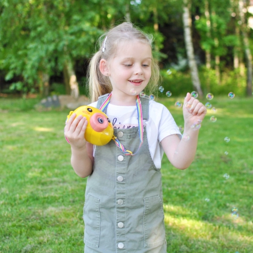 Mehurčkasta mašinica piščanček WOOPIE je idealna igrača za otroke od 3 let. Enostavno upravljanje z gumbom On/Off, bogata proizvodnja mehurčkov in lahka zasnova jo naredijo za popolno spremljevalko na vrtu, igrišču ali otroških zabavah.