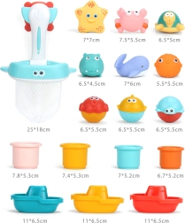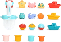 Kopalni komplet vsebuje različne igrače, ki prinašajo neskončno zabavo v kopalni kadi.